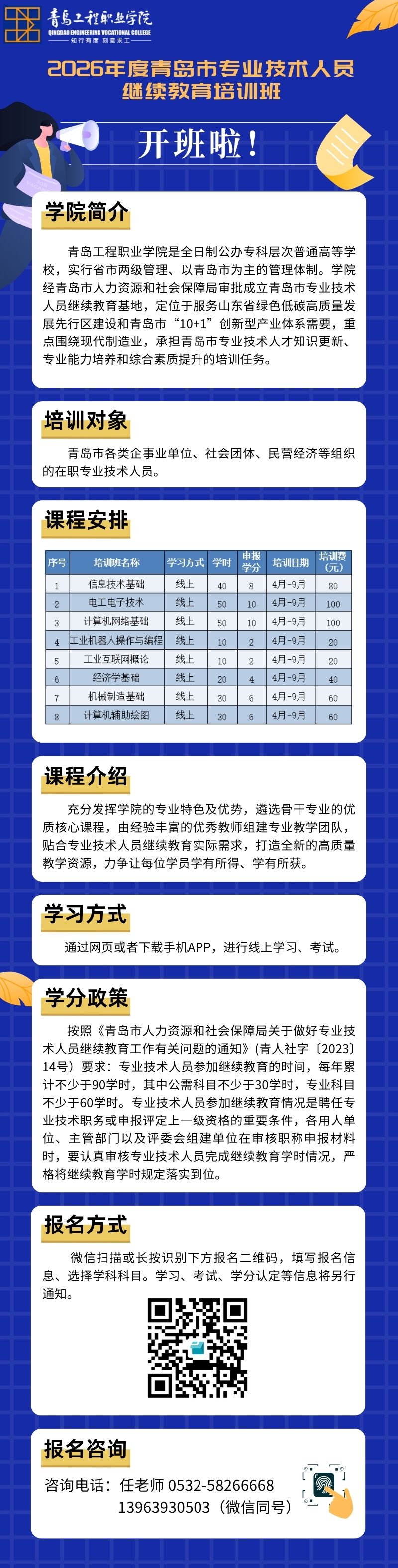 2026年度青岛专业技术人员继续教育培训班开班啦!